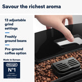 - CAFÉ FRAÎCHEMENT MOULU ET PERSONNALISÉ: chaque tasse est préparée à partir de grains fraîchement moulus grâce au moulin à 13 réglages ; ajustez l’intensité de l’arôme et choisissez un café court ou long d’une simple touche